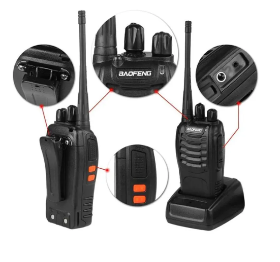 Комплект из 2 раций Baofeng BF-888S. Радиостанция Baofeng BF-888S – работает в частотах от 400 до 470 МГц, куда входит два безлицензионных диапазона LPD и PMR. Максимальная мощность составляет 3 Вт., мощность у всех моделей BF-888S одинаковая. Из основных функций в Baofeng BF-888S присутствует голосовая активация передачи (VOX), экономия батареи, благодаря чему Вы сможете оставаться на связи максимально долго. Рацию Baofeng BF-888S обычно используют люди, которым нужна надежная и простая в использовании система связи. Это может быть команда охраны, ремонтная бригада, группа любителей охоты или рыбалки, группа путешественников, работники на стройке, на фестивалях и других мероприятиях на открытом воздухе. Радиостанция Baofeng BF-888S пользуется популярностью благодаря своей простоте использования, компактности и доступной цене. Также рации отлично подойдут для детей. Соотношение цена-качество очень заманчиво, все это дополняется целым рядом полезных функций в сочетании с очень достойными техническими параметрами. Корпус Baofeng BF-888S выполнен из очень хорошего пластика, рация приятна на ощупь. На всех элементах рации стоит логотип фирмы изготовителя.